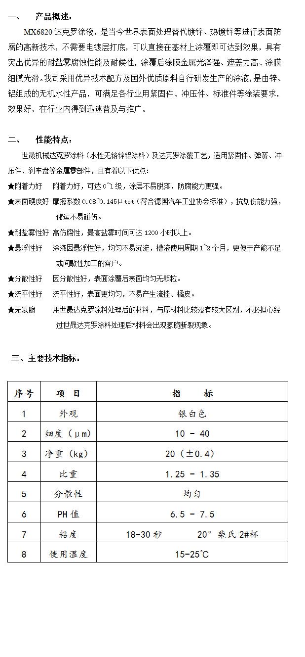 產(chǎn)品名稱:MX6820達(dá)克羅涂液