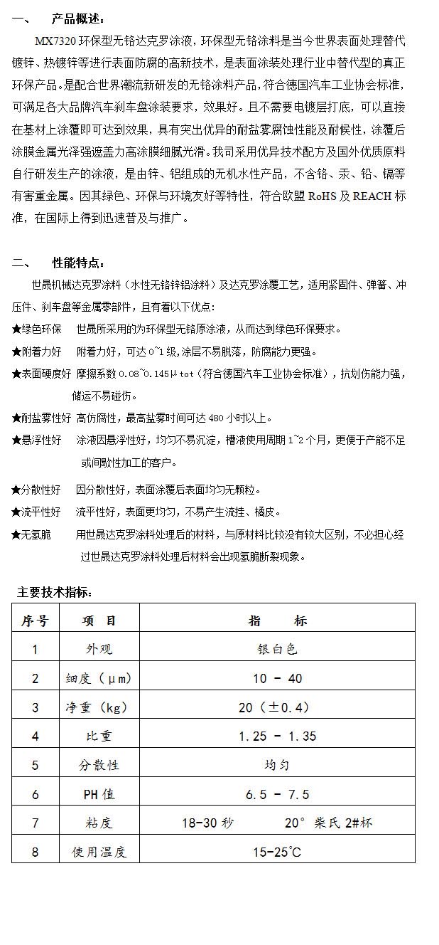 產(chǎn)品名稱:MX7320環(huán)保型無鉻達(dá)克羅涂液