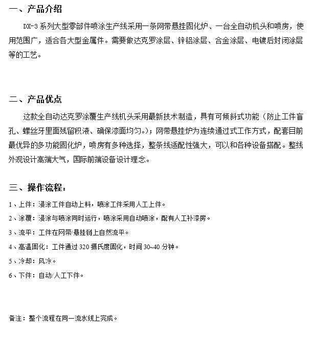 產(chǎn)品名稱:DX-3系列大型零部件噴涂生產(chǎn)線